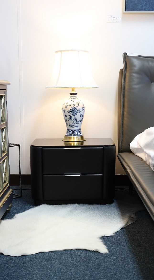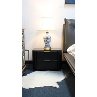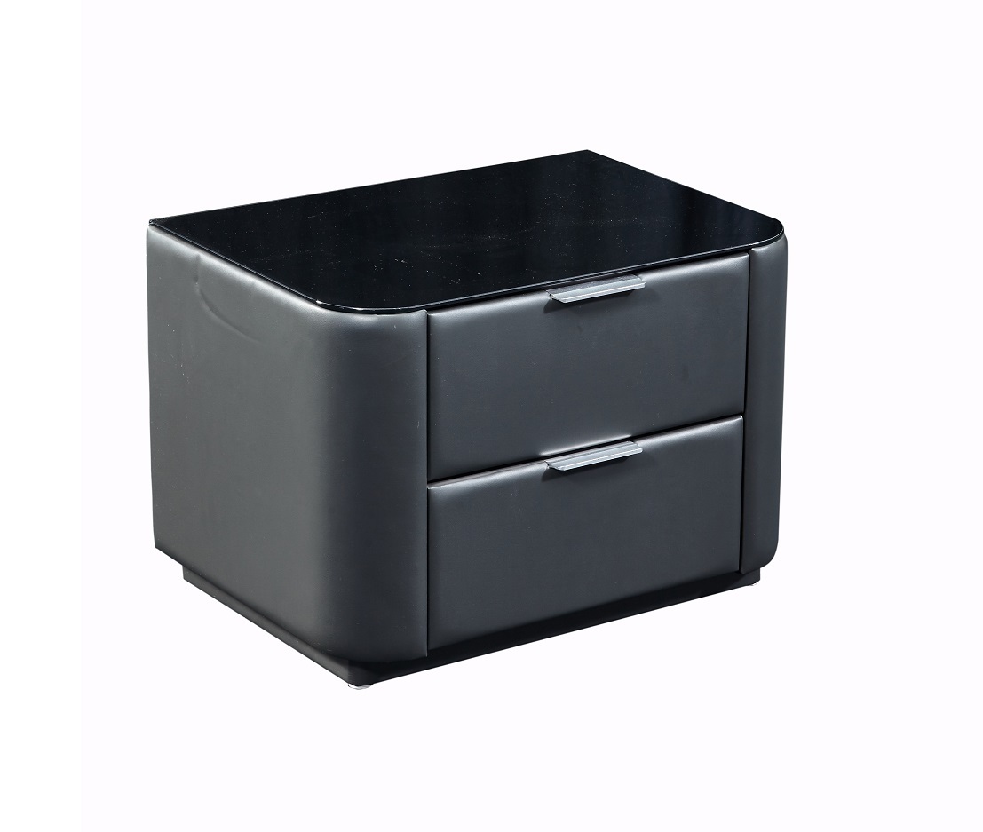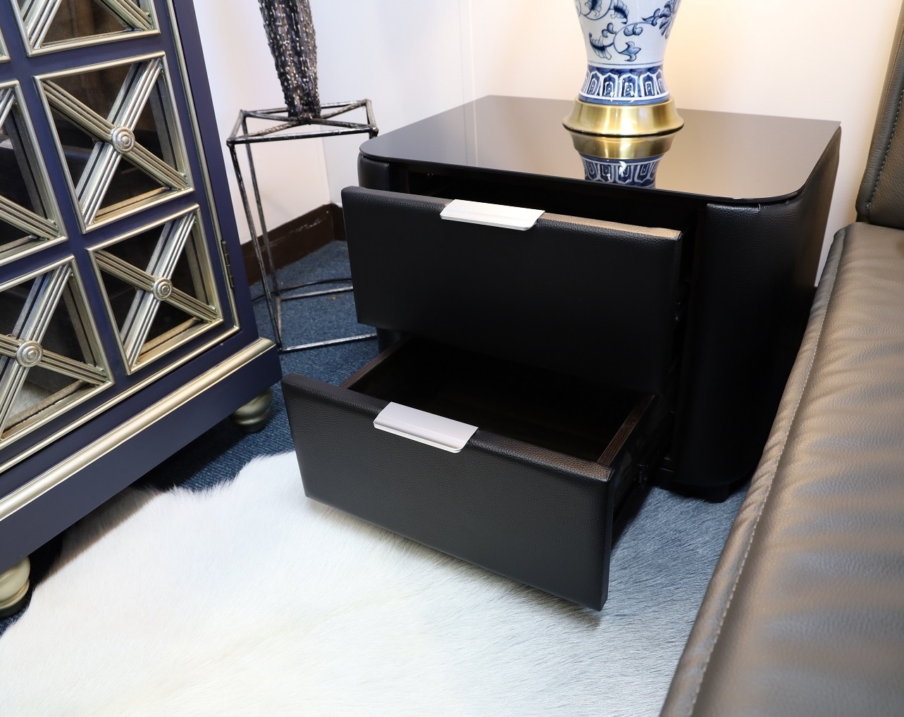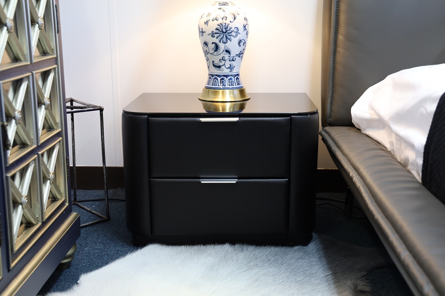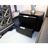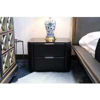 The Atom Bedside Table has clean, sharp lines with an organic curved front and a modern tempered glass top to suit. Would suit a modern or contemporary styled bedroom.