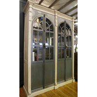 Great combination of provincial style and industrial materials. Washed oak, brushed steel and dark stain timber. Domed top glass windows, Available in a mix of 2 and 4 doors with various finishes. Great in any room including the man shed.