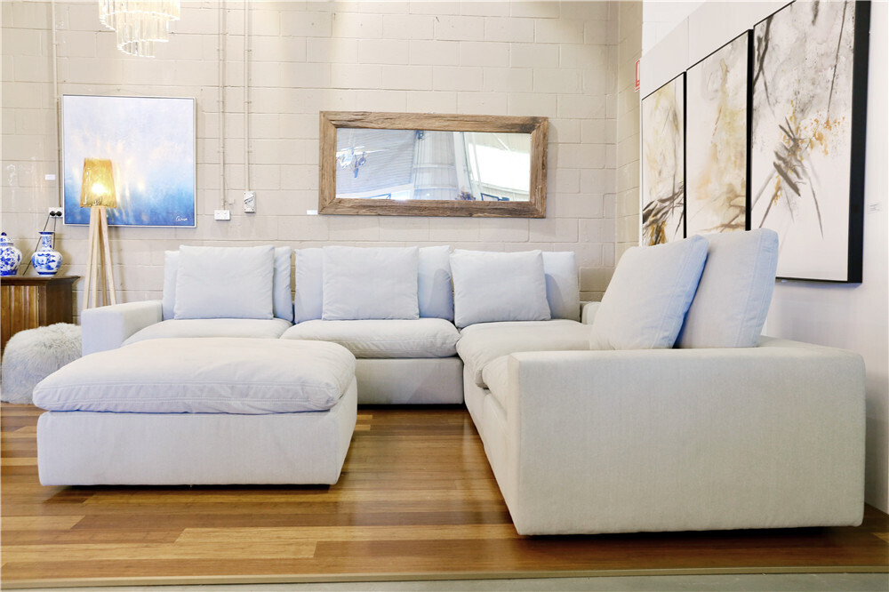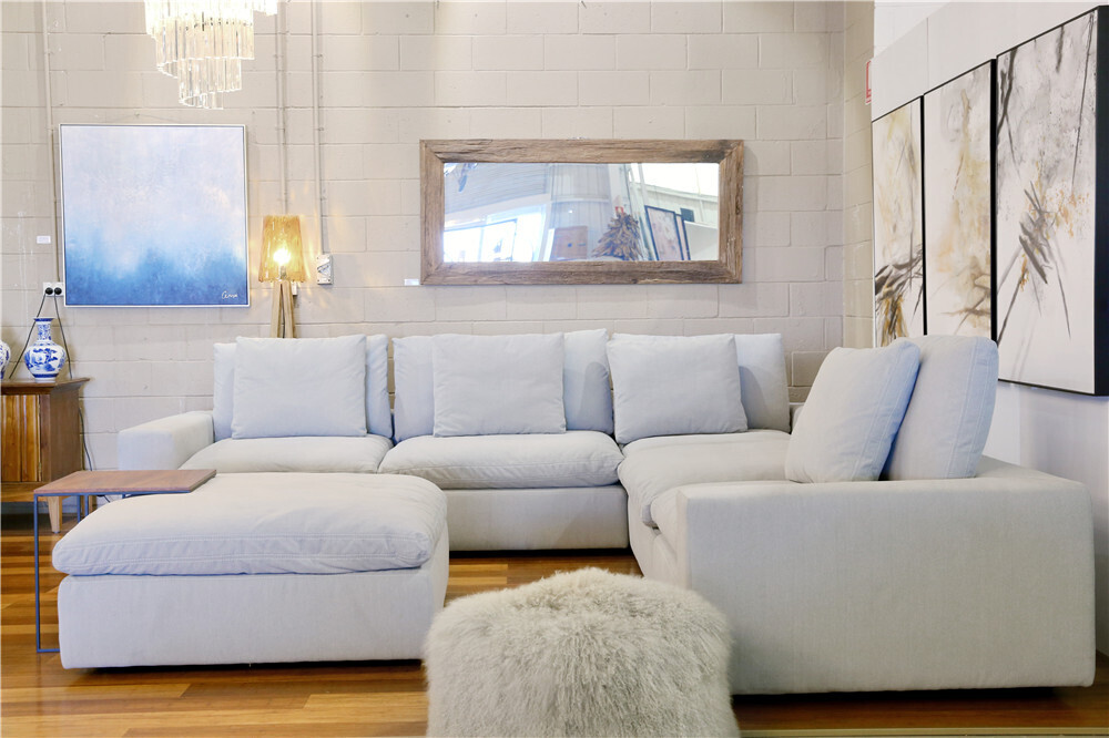 The Herman corner lounge sofa suite feature seats and back support made from high resilient foam and dacron fibre paired with down feather back cushions to guarantee the highest level of comfort, suitable for all-day lounging. With its ultra-generous size, you won't have to worry about scrambling for extra seats when you're having guests over, as this is a sofa perfect for lounging with family and friends while you spend quality time, catching up on life, playing board games or even just chilling and having a few drinks. The Herman corner lounge sofa is a timeless design that works well with contemporary, coastal and Hamptons styled settings. Available in 2 different colours. Warranty: 2-years on upholstery and foam, 5-years on frames We welcome you to our Brisbane showroom to chat with our friendly team and view our full range of beautiful Brisbane furniture. Like us on Instagram and Facebook at @mobelleliving to keep updated with what's new in store!